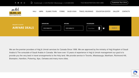 We are the premier providers of Hajj & Umrah services for Canada Since 1998. We are approved by the ministry of Hajj Kingdom of Saudi Arabia & The consulate of Saudi Arabia in Canada. We have over 15 years of experience in Hajj & Umrah management our goal is to provide you the very best in travel arrangements to the Holy land. We provide service in Toronto, Mississauga, Markham, Richmond Hill, Brampton, Hamilton, Pickering, Ajax, Oshawa and many more cities.